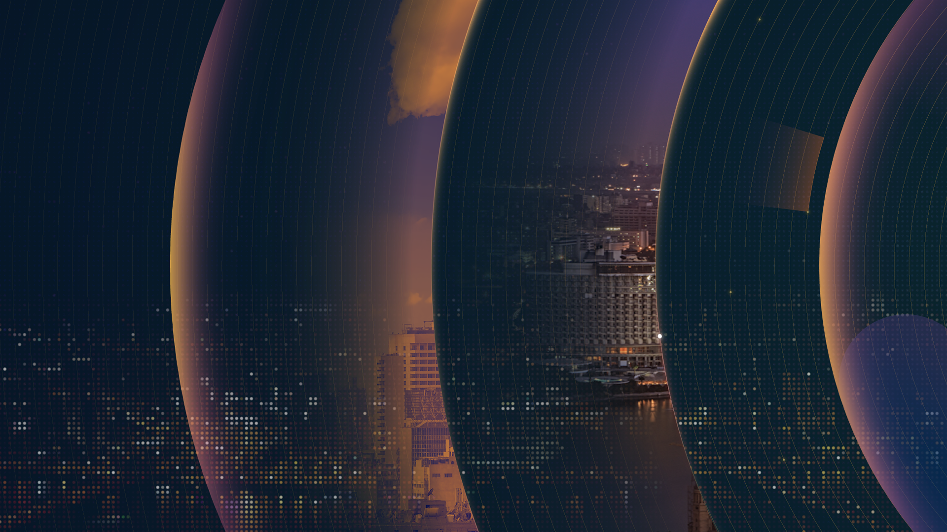 The idea was to reflect the city's sparkling lights and nighttime colors.